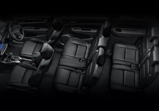 Ruang kabin luas dan lega hingga baris ketiga menjamin kenyamanan seluruh penumpang. Aura elegan kabin terpancar dari balutan material kulit asli di sejumlah area yang sering tersentuh.